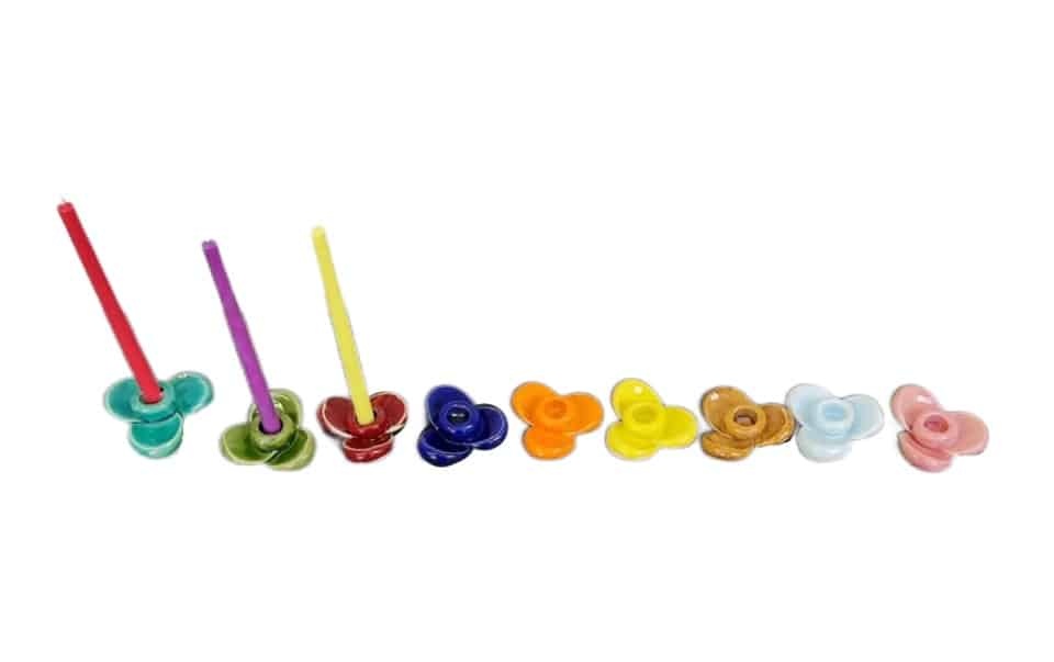 A flower menorah made of ceramic designed by artist Tali Ressler.