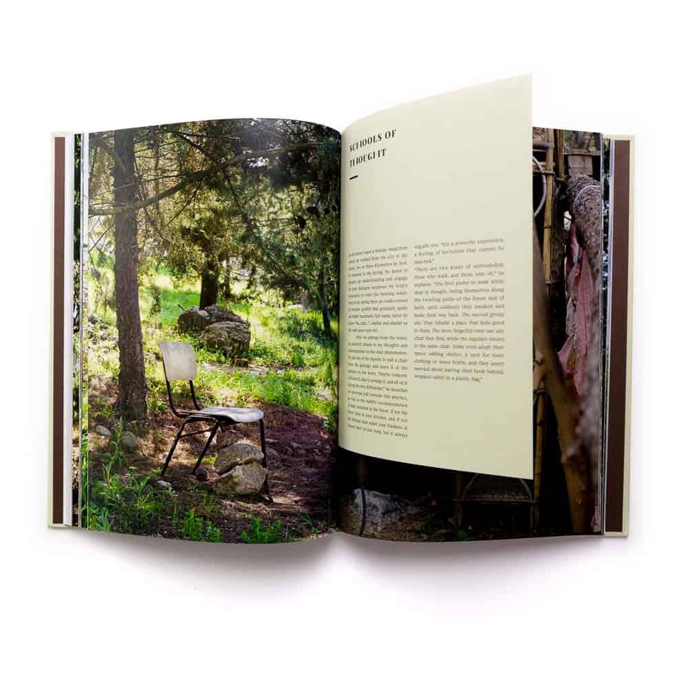 Isolated chairs, often patchily repaired or improvised from logs or rocks, can be found scattered among the trees in Israel’s forests. What purpose do these household objects serve in the middle of nature? Who put them there, and why? The answer is that they are used for self-seclusion as practiced by followers of the revered Hasidic Rabbi Nahman of Bratslav (1772–1810).