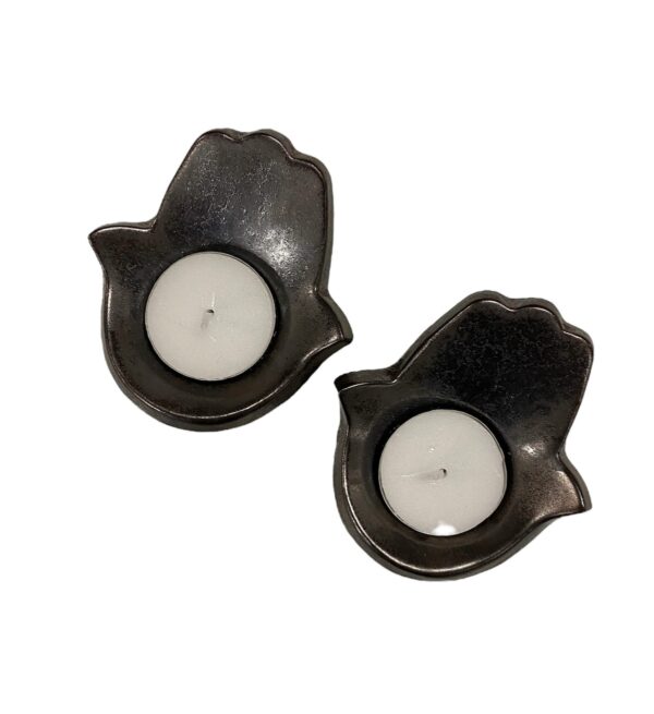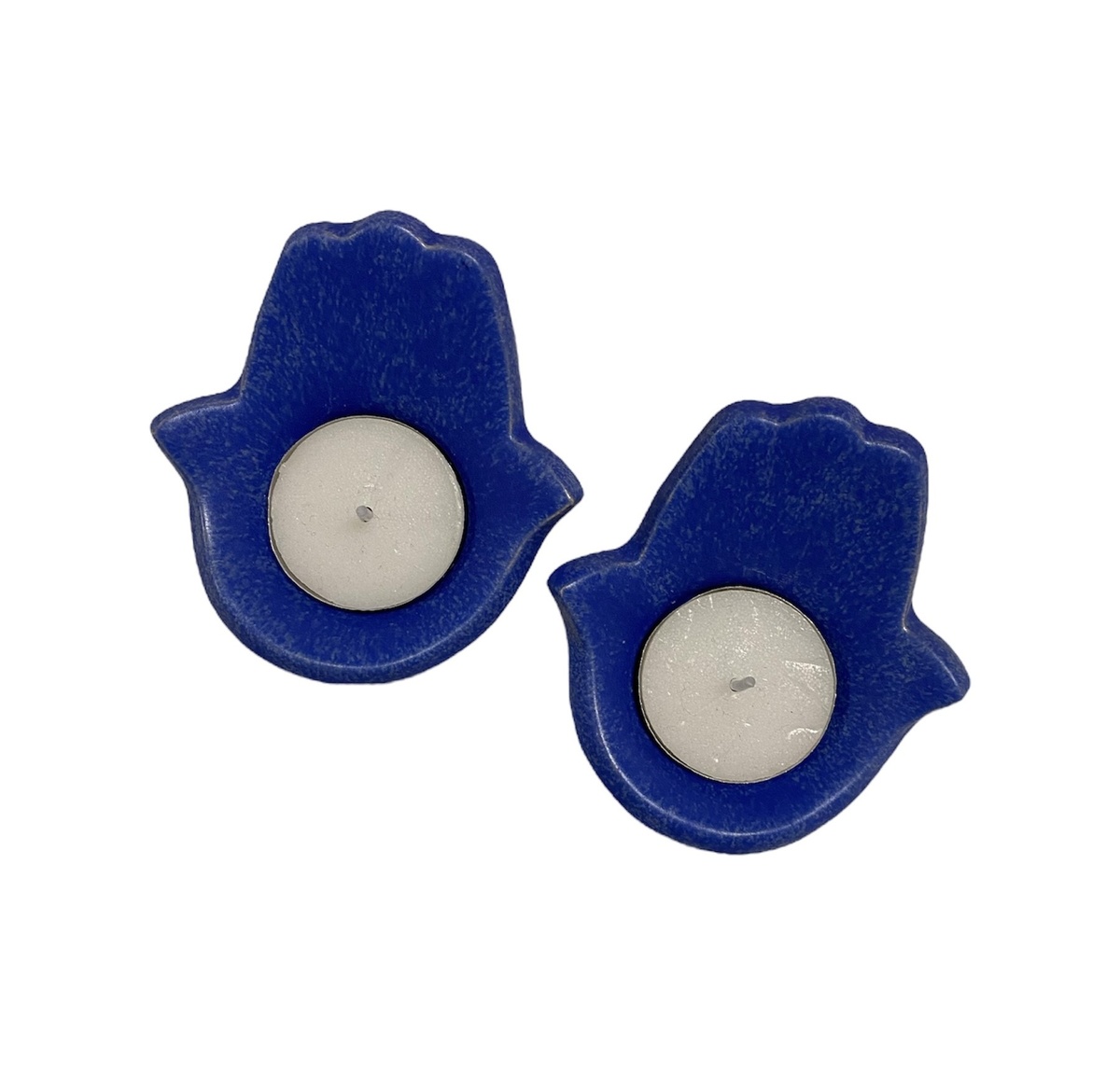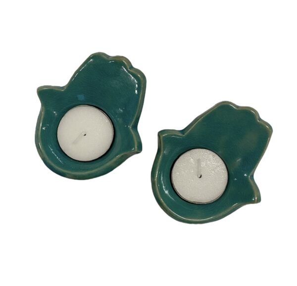 Hamsa candlesticks made of ceramic designed by artist Tali Ressler.