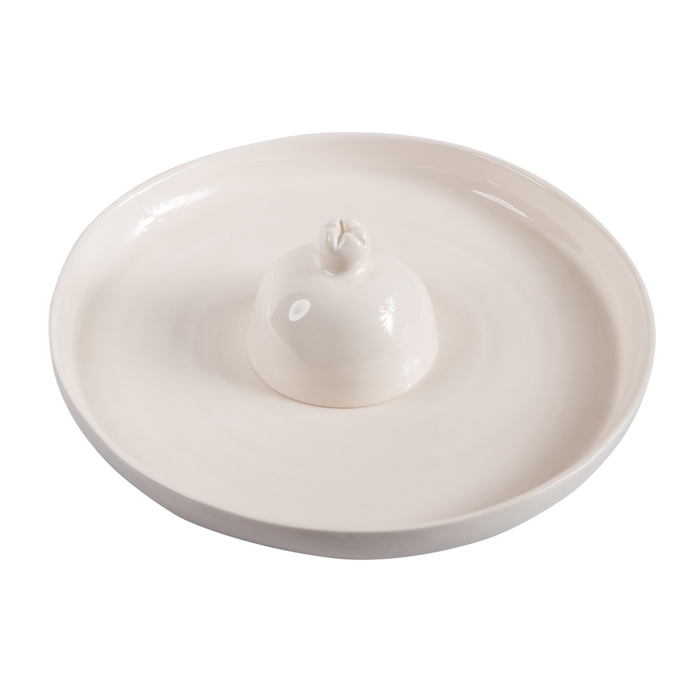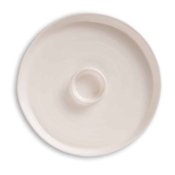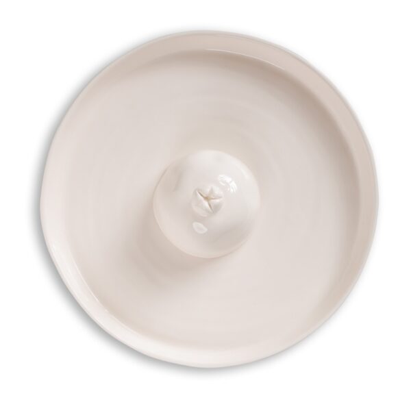 With its clean lines and original design, this plate was inspired by a two-thousand-year-old shallow bowl with the mold of a pomegranate attached to its center, which was uncovered in a tomb dating to the First Temple period in Tel Halif (in the northern Negev) and was in all likelihood used in libation rituals.