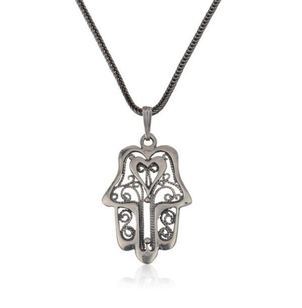 Hand made pendant with chain Hamsa, made by the artist Moshe Ben-David