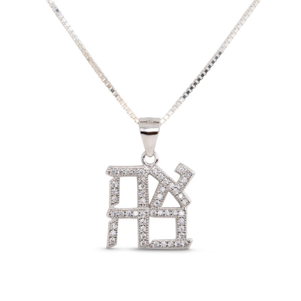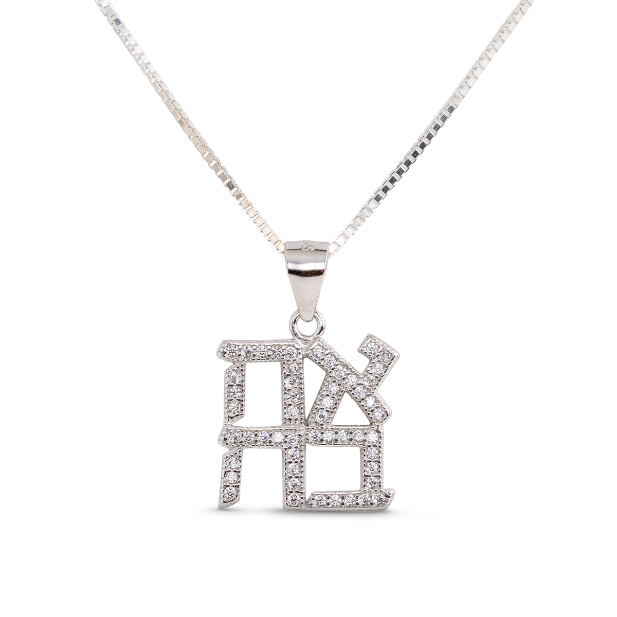 שרשרת כסף עם תליון "אהבה" מעוצב באותיות עבריות משובצות זרקונים נוצצים. שילוב מרהיב של עדינות, אמירה אישית ואלגנטיות עכשווית. מתנה מרגשת לבת זוג, חברה קרובה או לעצמך. מעוררת סקרנות ומוסיפה ברק לכל הופעה.