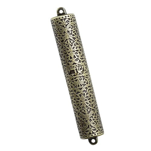 "וּכְתַבְתָּם עַל מְזוּזֹת בֵּיתֶךָ וּבִשְׁעָרֶיךָ" נכתב פעמיים בספר דברים; הדבר הראשון שמקדם את פני הבאים לביתכם. עיטורי הצמחים המשתרגים על בית המזוזה הזה מבוססים על כריכת תנ"ך מהודרת ששמורה באוסף המוזיאון. הכריכה העשויה כסף גזור דמוי תחרה נוצרה במאה ה-17 בעיר אוגסבורג שבגרמניה.