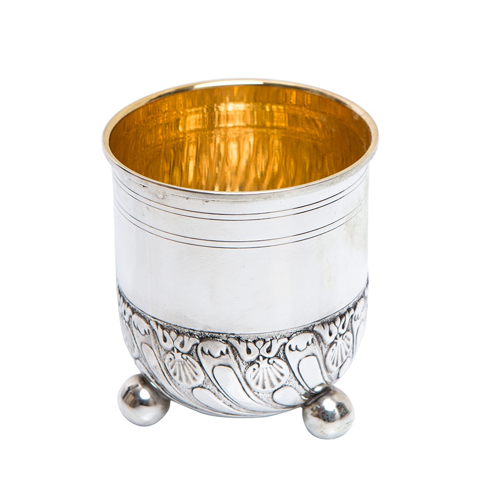 החפץ המקורי השמור באוסף המוזיאון ניצב אף הוא על שלוש רגליים כדוריות וגביעים דומים היו נפוצים בגרמניה במאה ה-17 וה-18 גם בקרב לא יהודים. הגביע שבאוסף המוזיאון נושא כתובת בעברית, שבה נאמר כי הוענק במתנה לרב מצפון בוהמיה באמצע המאה ה-18.