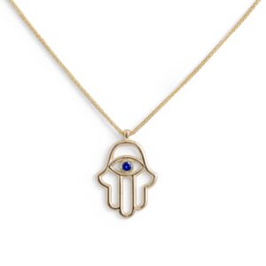 תליון חמסה מזהב 14K בעיצוב פתוח, נקי ומינימליסטי