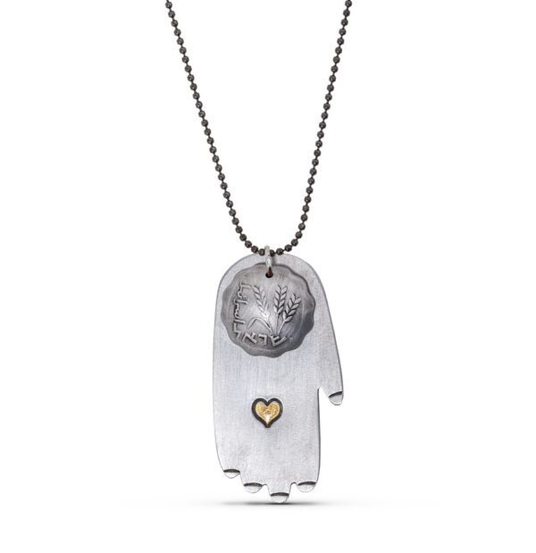 שרשרת מיוצרת בעבודת יד. עשויה מאלומיניום עם ריקוי ועיטור זהב עם שובלי חוטים שחורים.