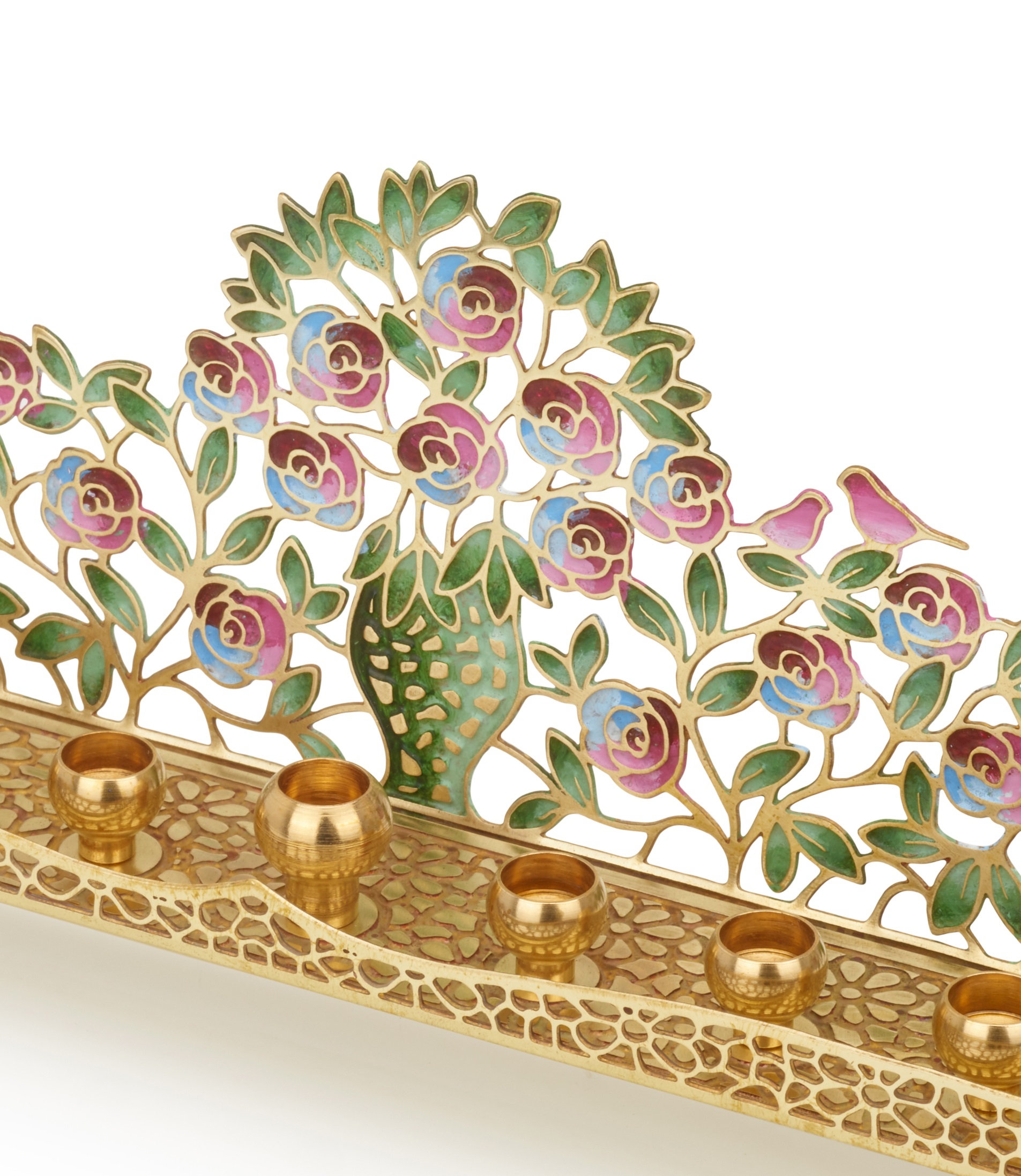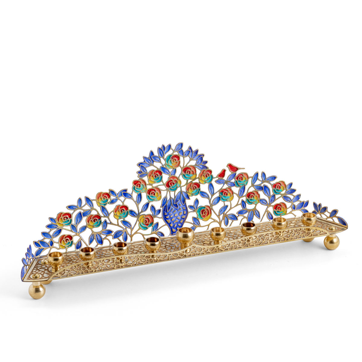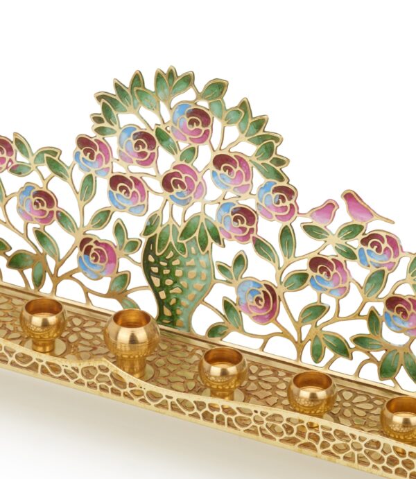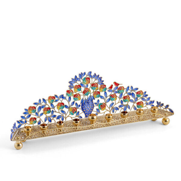 החנוכייה עשויה בעבודת יד ממתכת פליז, וצבועה בקפידה באמייל צבעוני המעניק לה מראה אמנותי וחי.