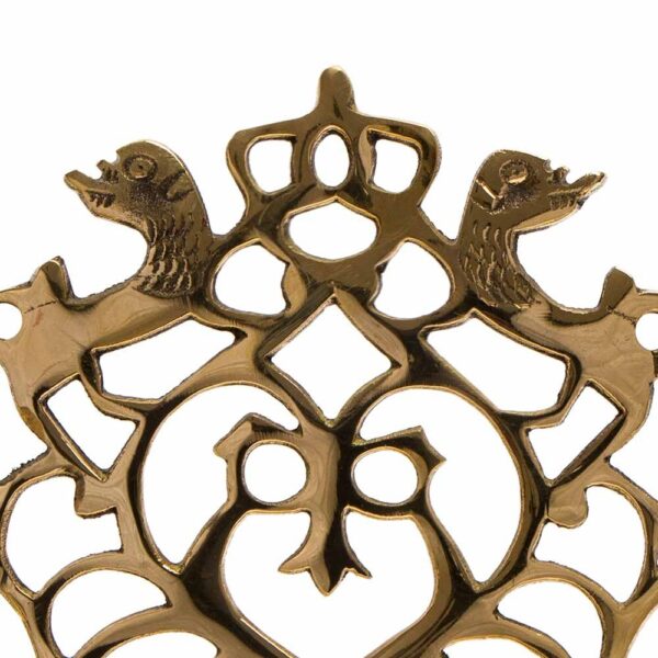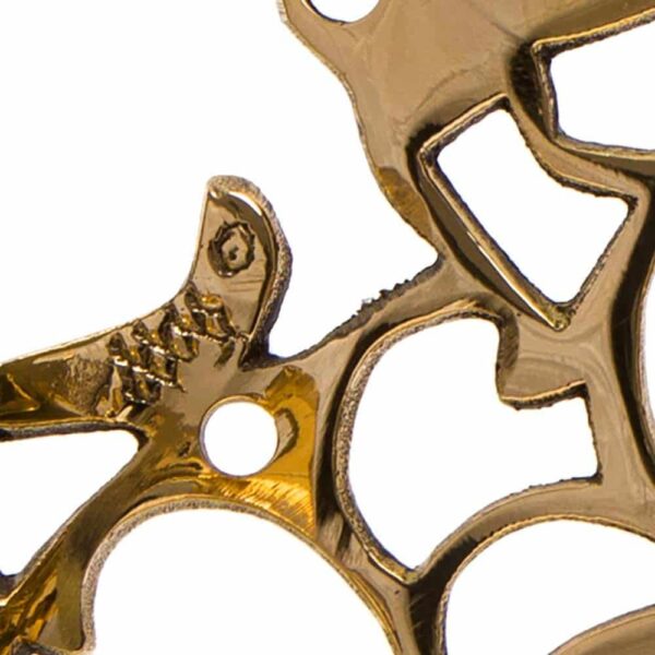 העיצוב של גב המנורה מזכיר במראהו מגזרת נייר, וממנה מבצבצים דימויים של בעלי-חיים – כגון אריות, צבאים וציפורים – ויש שצורתם דמיונית לגמרי. אמנות המגזרות רווחה במיוחד בקרב יהודי פולין וגליציה, ומוטיבים רבים משותפים להן ולמנורות חנוכה מאזורים אלה.
