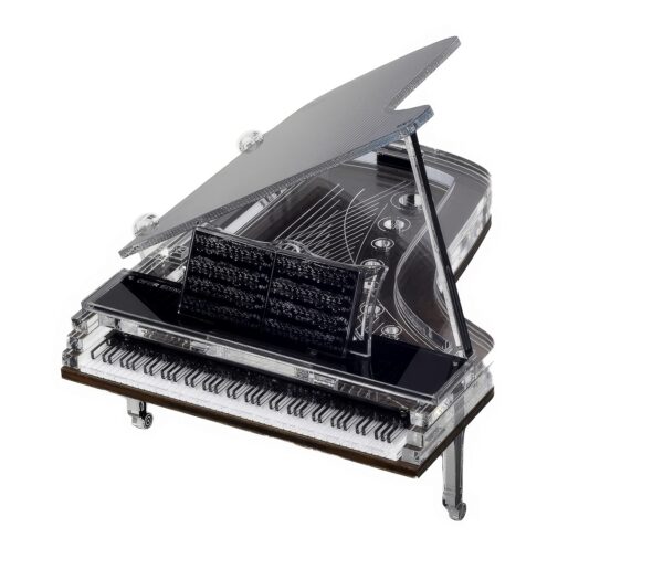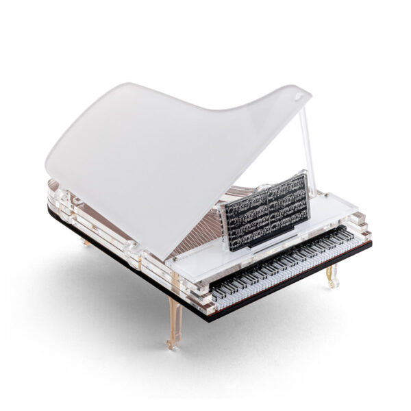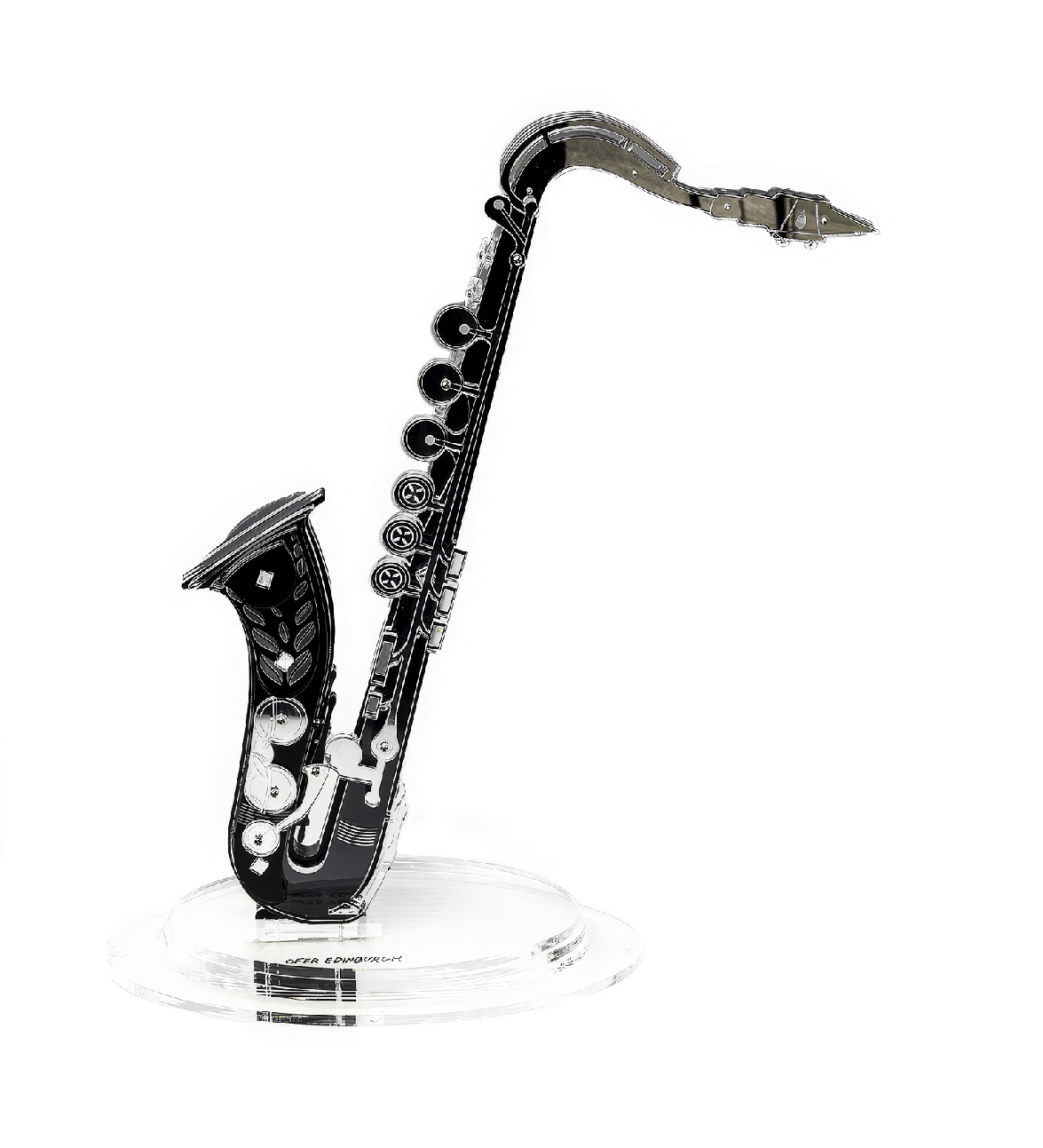 סדרת פסלונים של כלי נגינה עשויים זכוכית אקרילית שקופה, בעיצוב מוקפד שמפגיש בין דיוק צורני ליופי מוזיקלי.