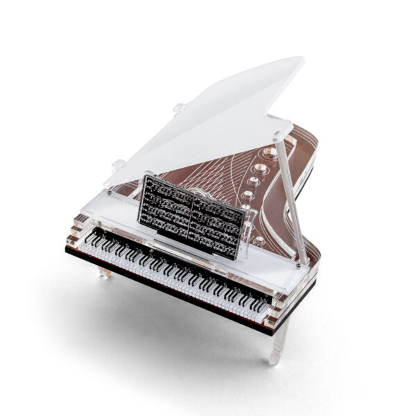 כל דגם – נבל, כינור, פסנתר – משמר את הקווים המוכרים של הכלי ויוצר מהם פריט עיצובי אלגנטי עם נוכחות רגישה.