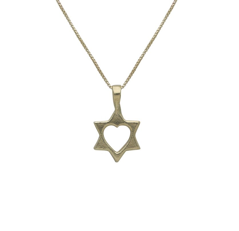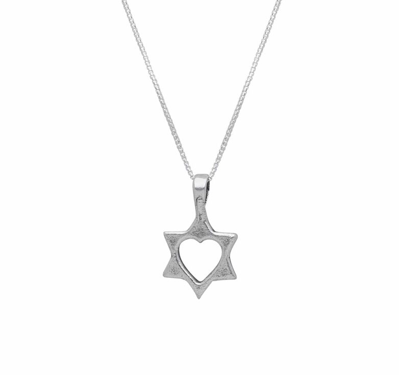 תליון מגן דוד עם לב במרכז, תכשיט שמפגיש בין זהות לאהבה.