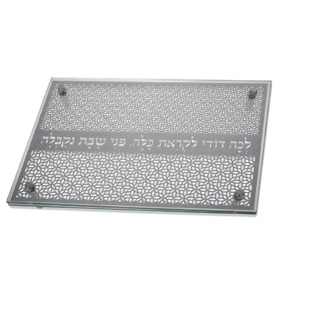 מגזרת נירוסטה עדינה בין 2 זכוכיות (מחוסמות) וארבע רגלי נירוסטה, הרגליים מוברגות בין 3 השכבות ומקבעות את השכבות בצורה יציבה וטובה.