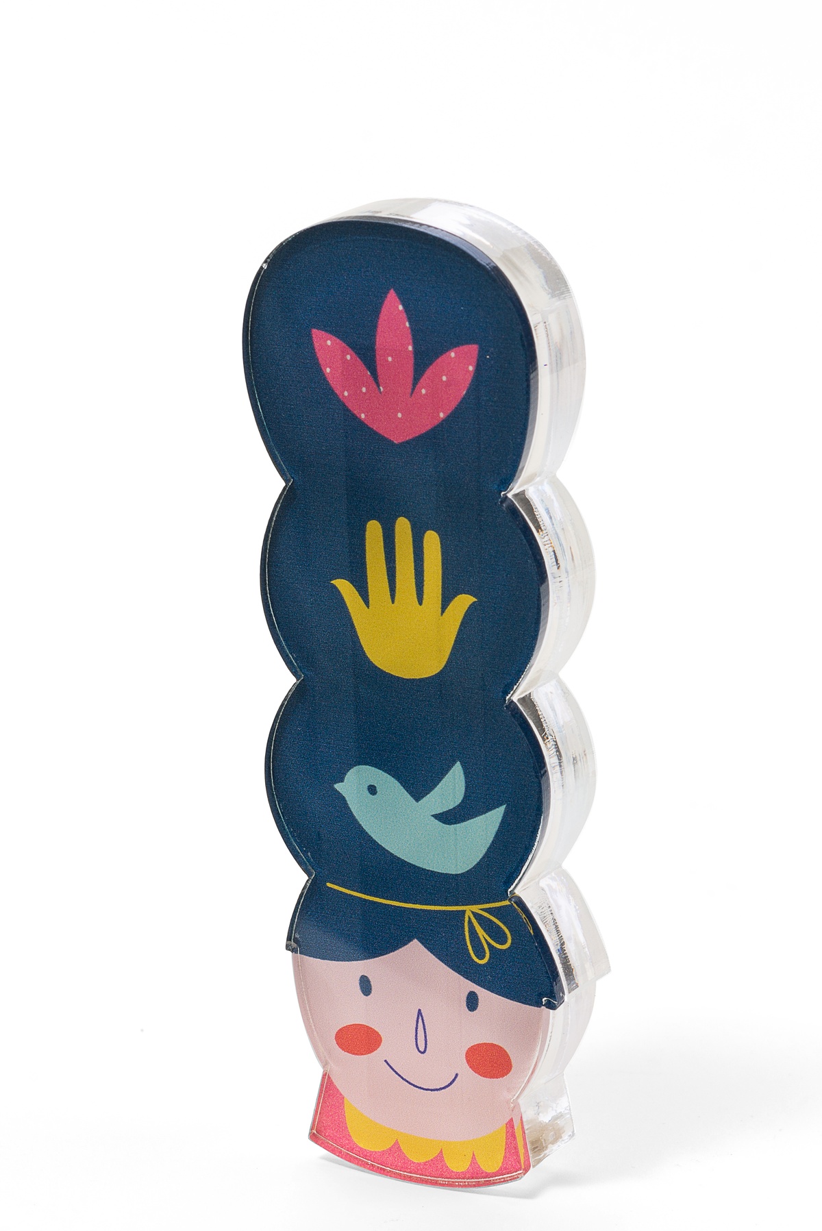 בית בית מזוזה בעיצוב האמנית גליה לוז, מאיירת המתמחה בעיצוב דמויות קולאז'ים ופורטרטים.