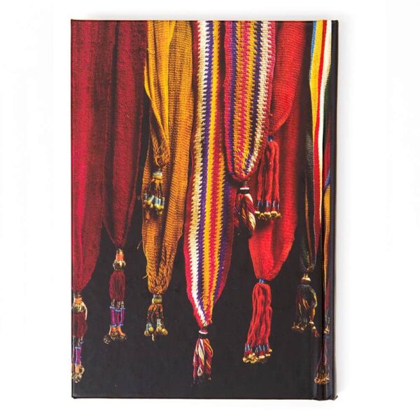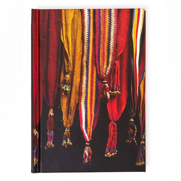 המחברת מעוטרת בגדילים של חגורות נשים – קצוות של אריגים בגוונים שמחים ומשמחים.