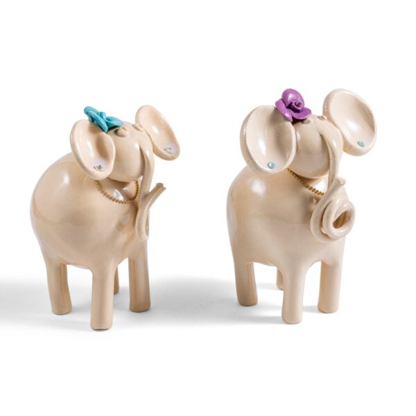 דמויות פילי פורצלן קסומות בעבודת יד של האמנית טלי רסלר, כל אחת ייחודית ושונה – מצוירת, מעוצבת ומעוטרת בפרח צבעוני משתנה (בהתאם למלאי). אלגנטיות, שובבות ומלאות אופי, הפילים מוסיפים חן אישי למדף, לפינת עבודה או כמתנה עם משמעות.