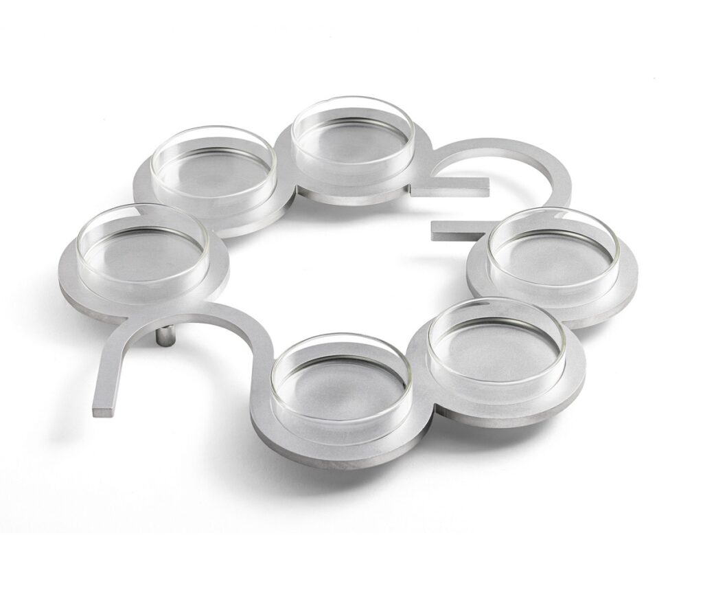 קערת פסח יוצאת דופן, שמביאה את ההיסטוריה אל שולחן החג. בעיצוב הקערה מתוארים ערים מקראיות, פיתום ורעמסס, כפי שנראו בעיני האמן.
