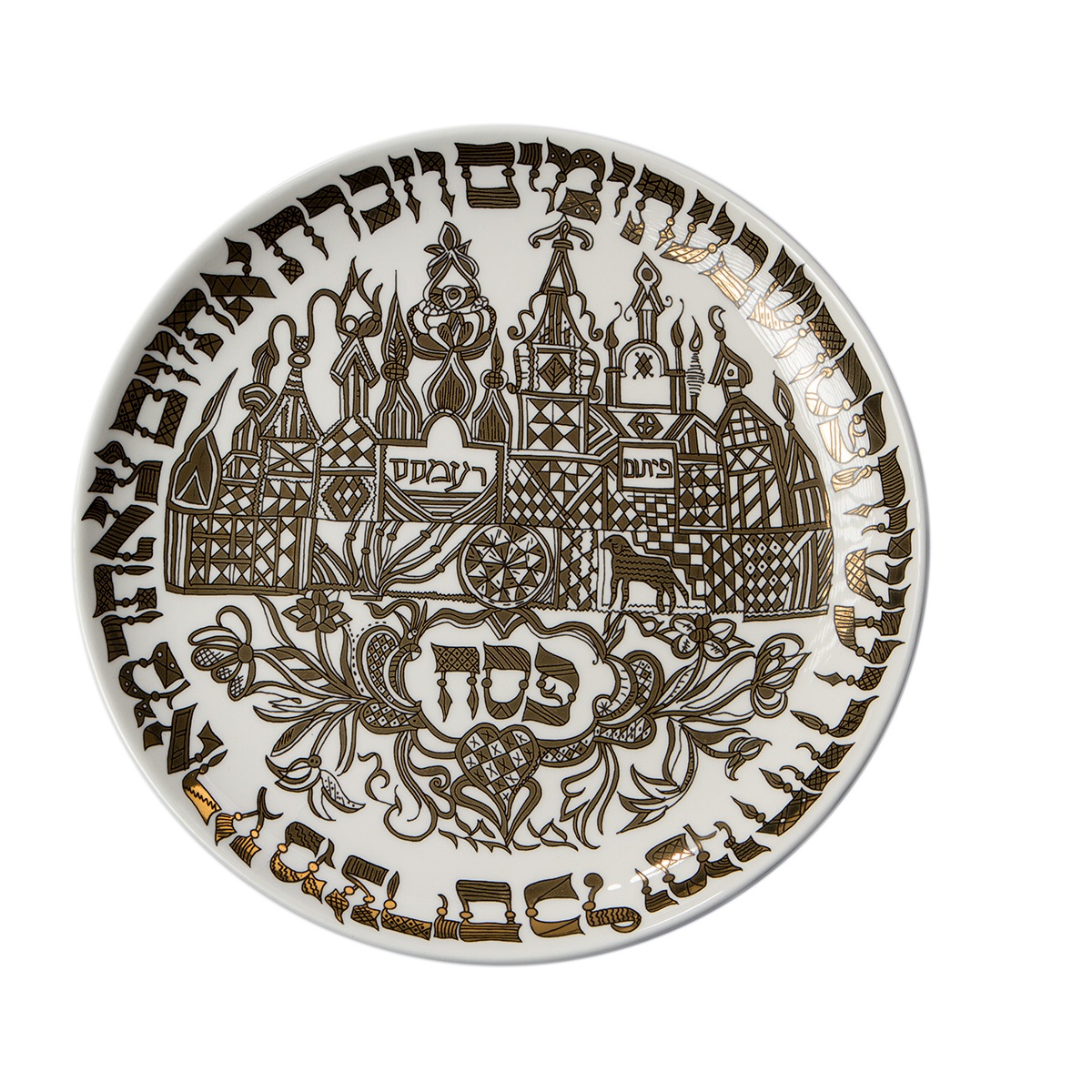 מסביב לצלחת מופיע פסוק מהתורה בקליגרפיה מהודרת.