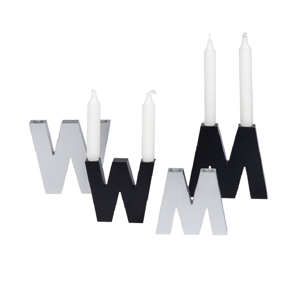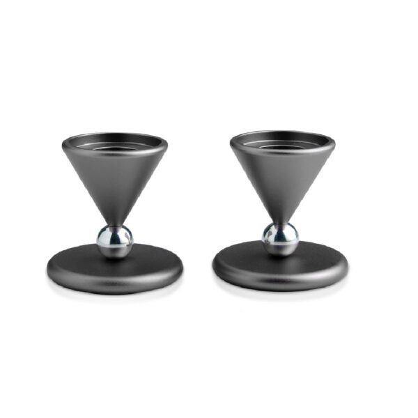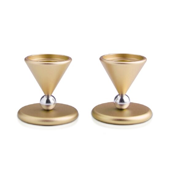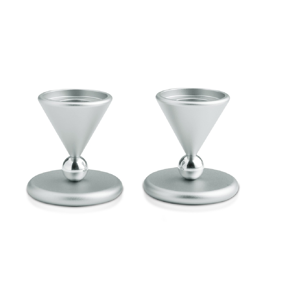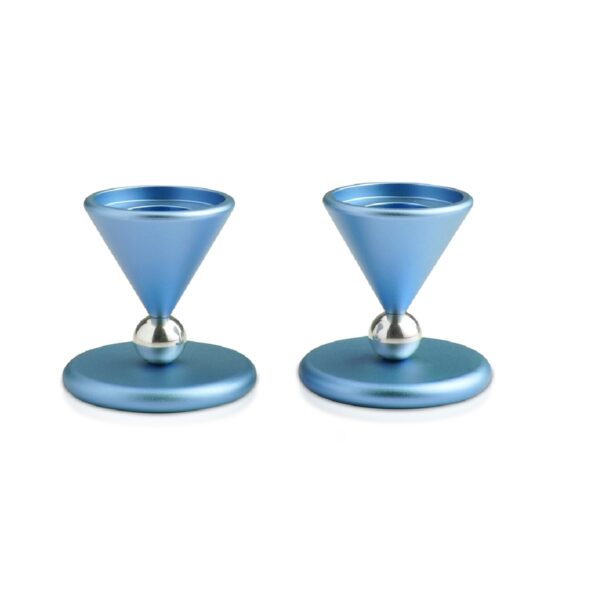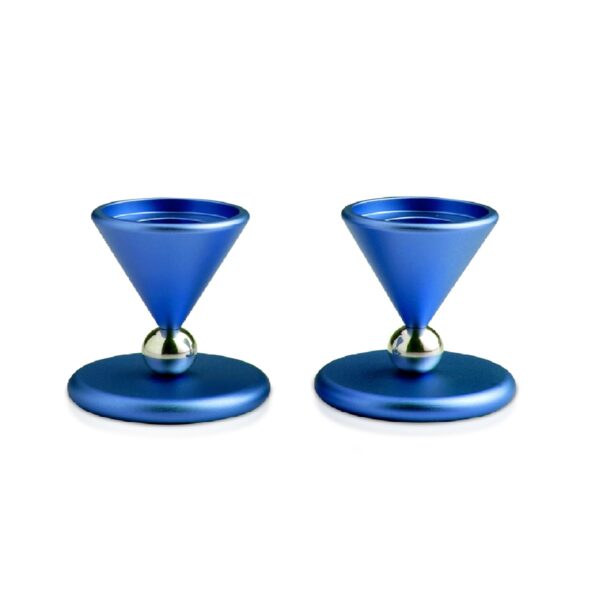 פמוטי משולש בעיצוב מודרני ונקי. עשויים אלומיניום צבוע בגוון כחול מט, עם פרטי ניקל מבריק. מתאימים לנרות שבת קטנים, ומהווים פריט עיצובי קלאסי עם טוויסט עכשווי.