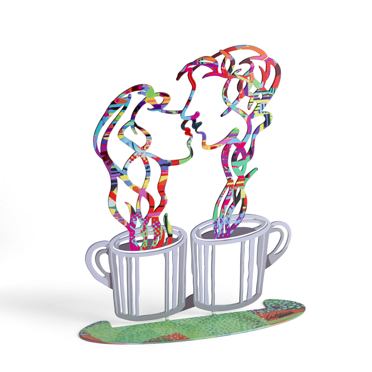 הפסל הזה – שני ספלים מהבילים שמהם עולים קווי מתאר של זוג מתנשק – הוא לא רק פריט דקורטיבי, הוא סיפור אהבה.