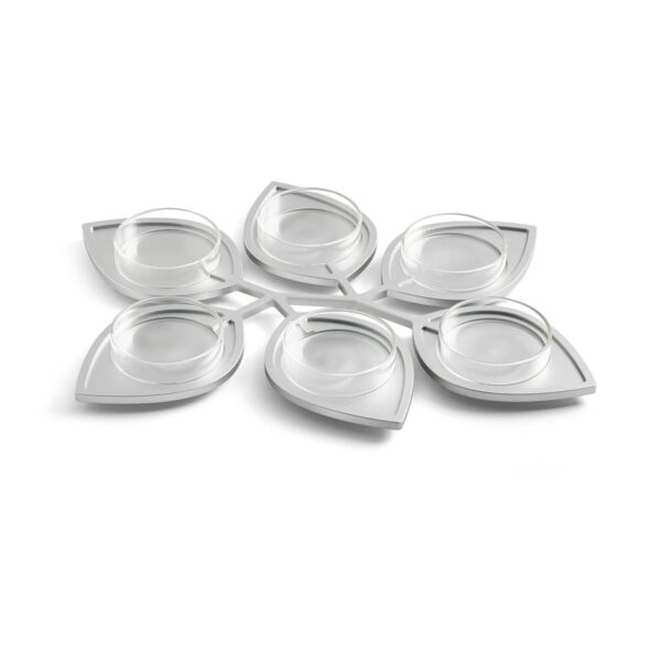 צלחת עלים מודולרית בעיצוב עכשווי, מתאימה הן לשולחן הסדר בליל פסח והן לשימוש יומיומי אלגנטי. ששת התאים המעוצבים בצורת עלים מתחברים יחד להרכב סימטרי שמעניק מראה טבעי, נקי והרמוני. בימי חג היא משמשת כצלחת פסח בעלת נוכחות, ובשגרה – כפריט דקורטיבי מרהיב להגשת מנות, מטבלים או פירות. חיבור מדויק בין פונקציונליות לאומנות עיצובית ישראלית.