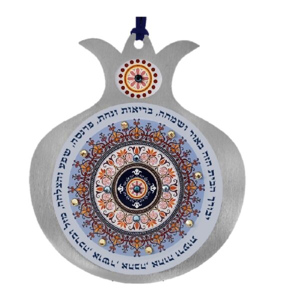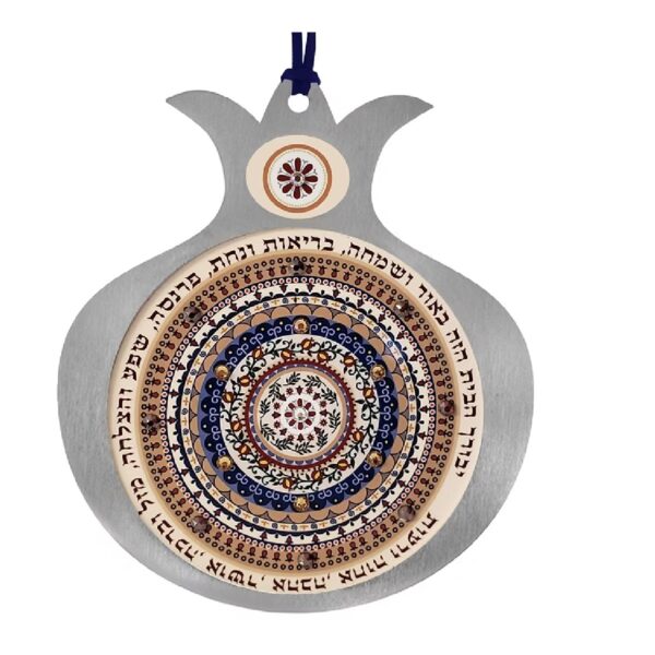 רימון עם ברכת הבית מנירוסטה עם הדפס צבעוני ואבני קריסטל.