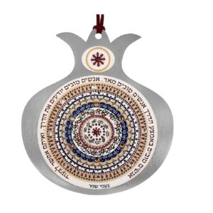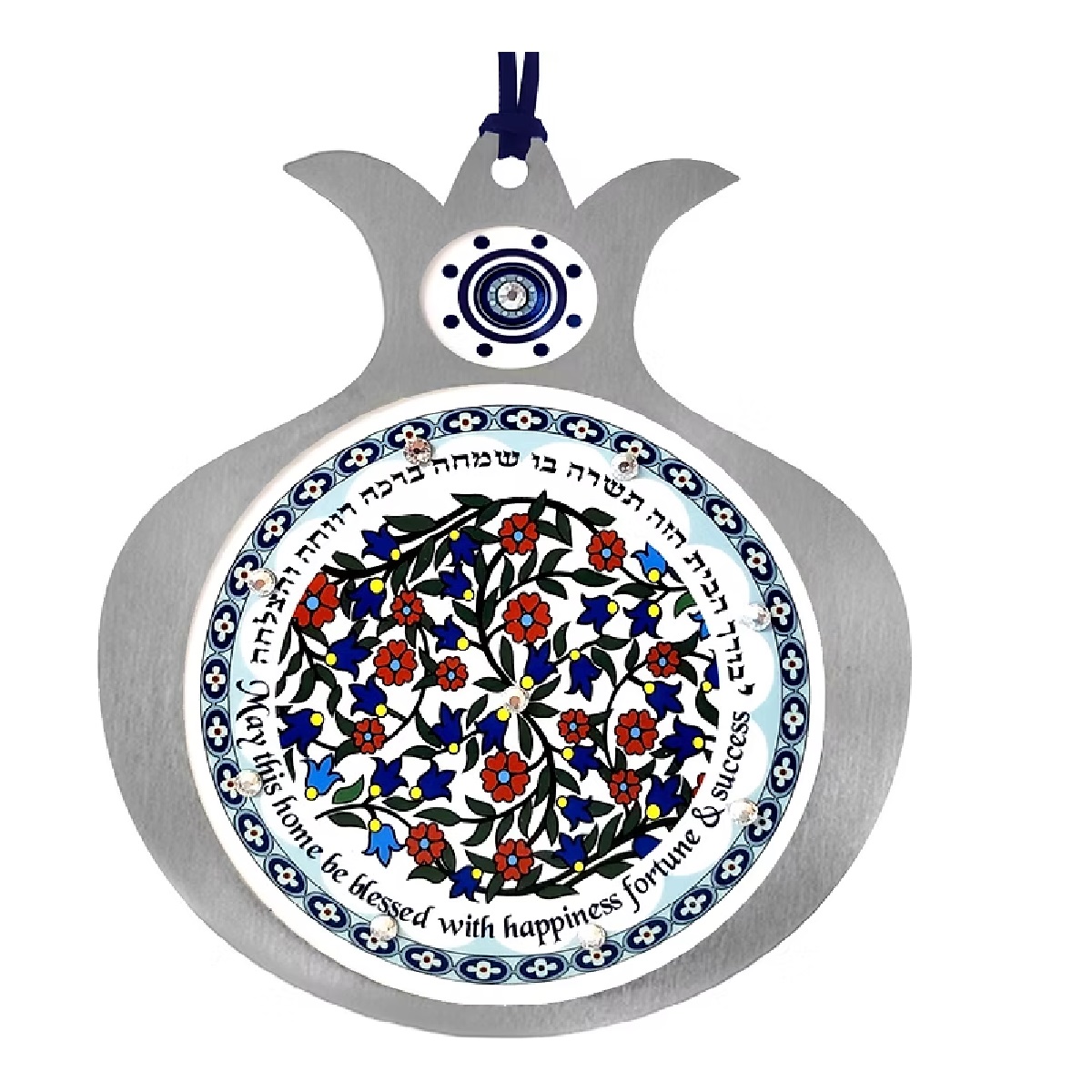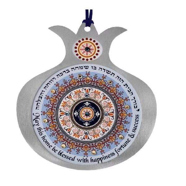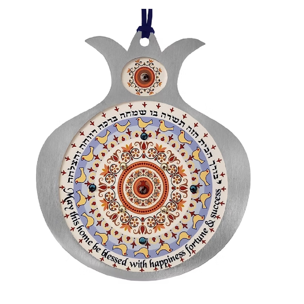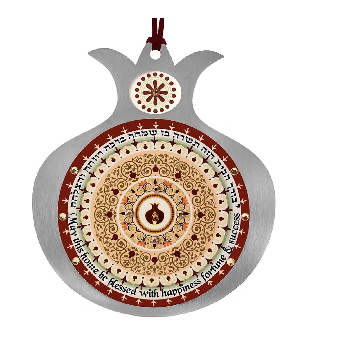 רימון עם ברכת הבית מנירוסטה עם הדפס צבעוני ואבני קריסטל.