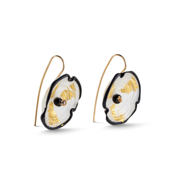 פרחי זכוכית לבנים מעם שולים שחורים ונגיעות זהב 22 קראט.