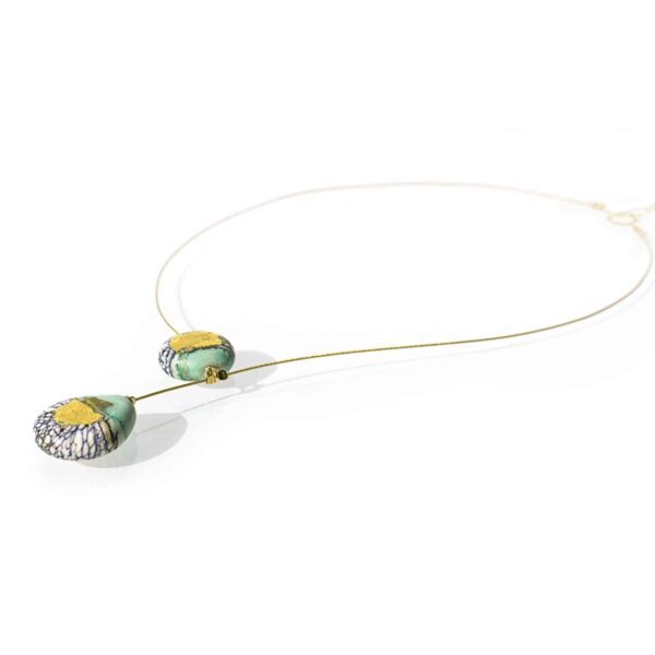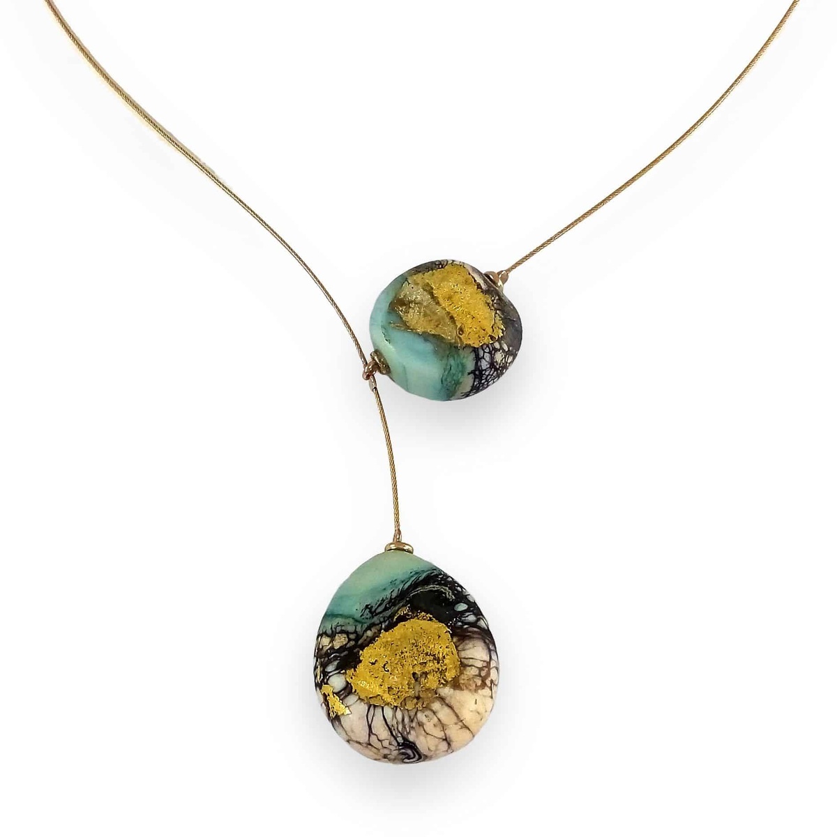 זכוכית, עלי זהב 24 קראט, כבל מצופה זהב 24 קראט, סגירה גולדפילד.