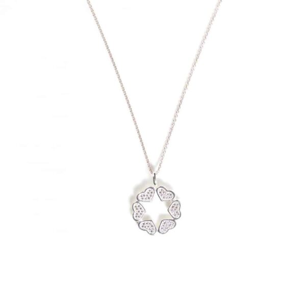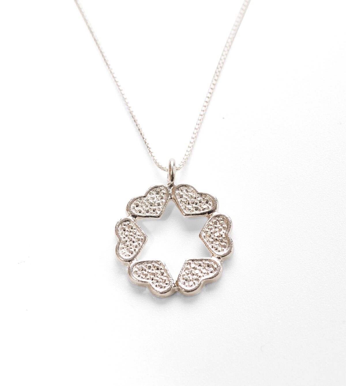 שישה לבבות כסף מנוקדים נושקים זה לזה ויצרים מגן דוד מלבב: שרשרת נהדרת שתשמח כל לב!